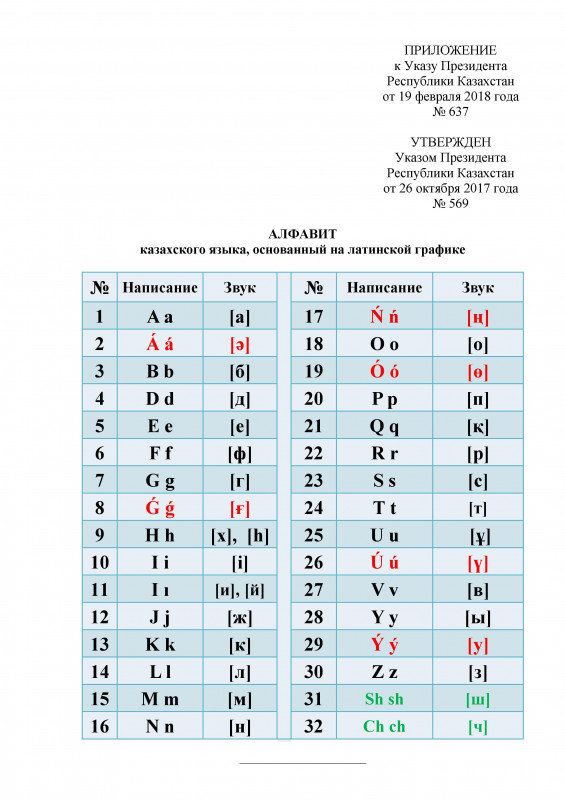 АЛФАВИТ казахского языка, основанный на латинской графике