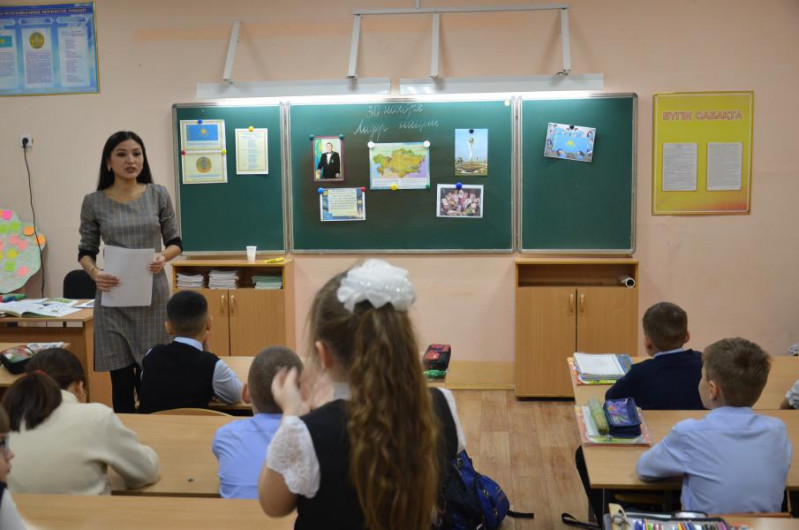 30 ноября в школе прошли мероприятия, посвященные празднованию Дня Первого Президента Республики Казахстан. Во всех классных коллективах с 1 по 10 класс проведены классные часы на темы: «Наш Президент», «Великие имена Великой степи», «Великие открытия казахского народа» в ходе которых ребята рассуждали о роли Президента Н.А. Назарбаева в создании Независимой Республики, классные руководители разъясняли ребятам основные положения статьи Президента «Семь граней Великой степи», говорили о великих открытиях казахского народа, великих именах золотой  степи.