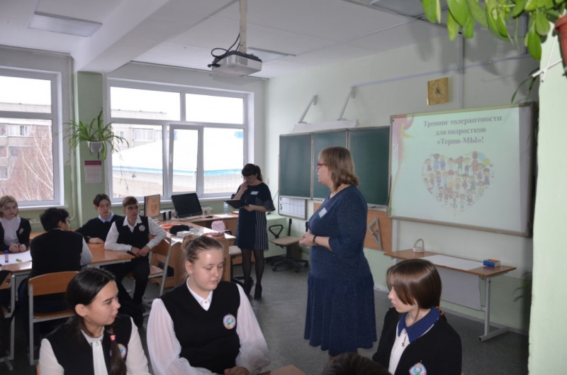 • Психологический тренинг «ТЕРПИ-МЫ», для учащихся 9 «В» класса – психологи школы Попова Татьяна Владимировна и Мироняк Альбина Азатовна;