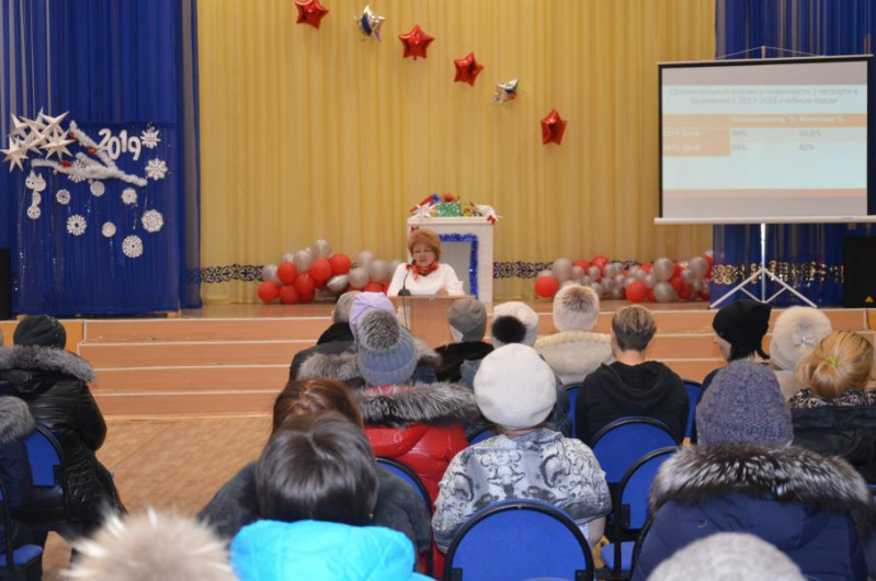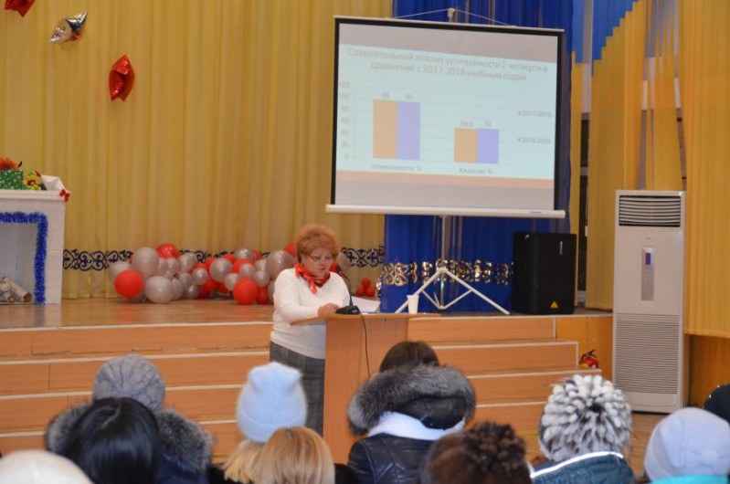 По итогам учебно-воспитательной работы школы за 2 четверть 2018-2019 учебного года 10 января выступила директор школы Булатбекова С.К.